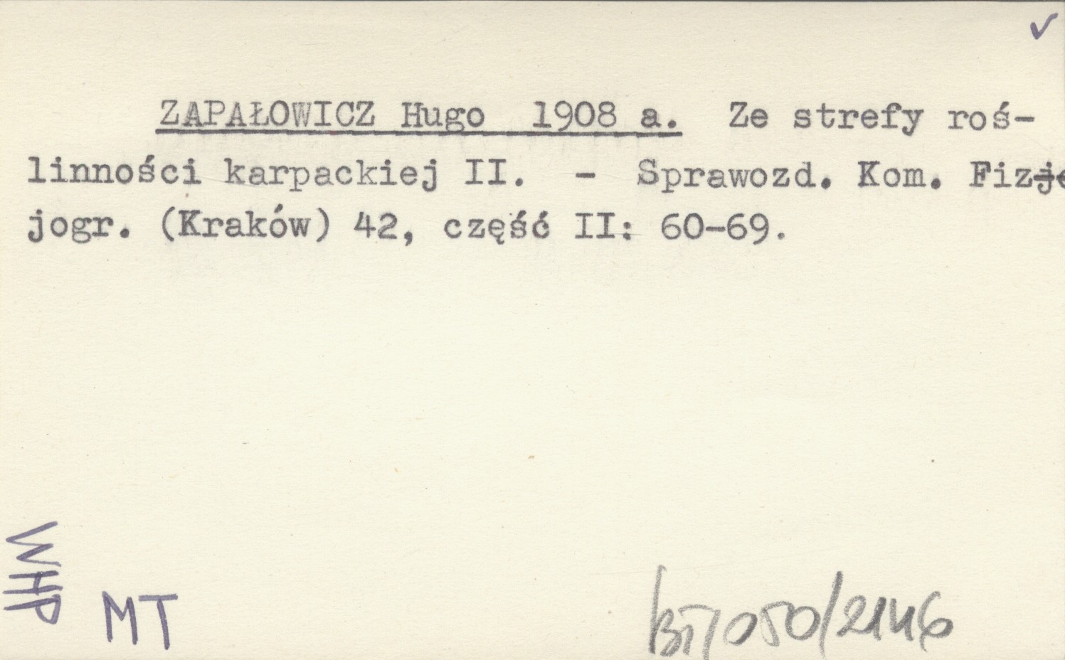 ZAPAŁOWICZ Hugo 1908 a Ze strefy roślinności karpackiej II.