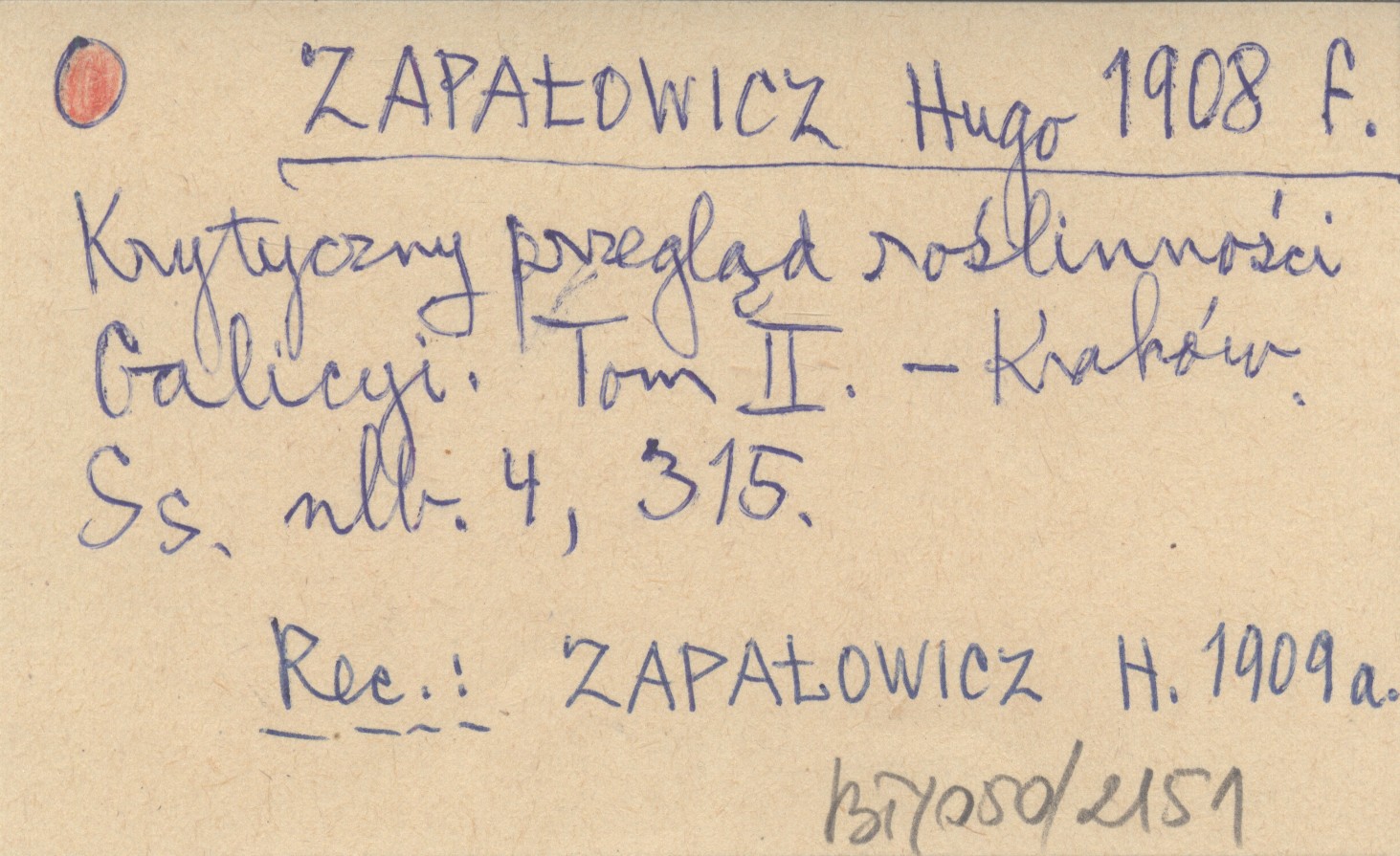 ZAPAŁOWICZ Hugo 1908 f Krytyczny przegląd roślinności Galicyi. Tom II.
