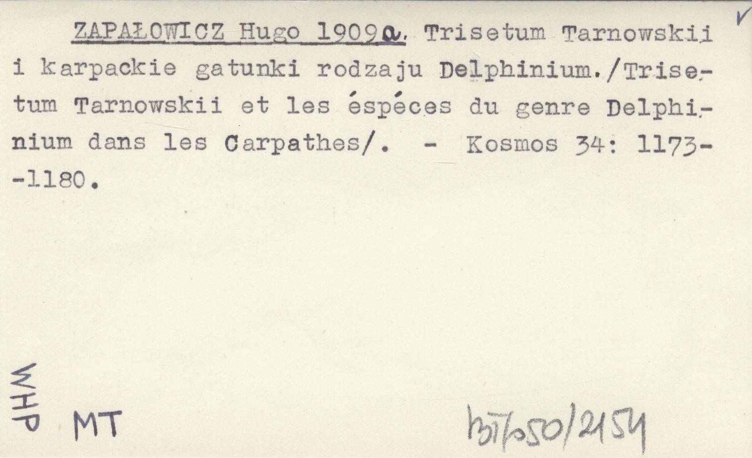 ZAPAŁOWICZ Hugo 1909 a Trisetum Tarnowskii i karpackie gatunki rodzaju Delphinium. (Trisetum Tarnowskii et les éspéces du genre Delphinium dans les Carpathes).