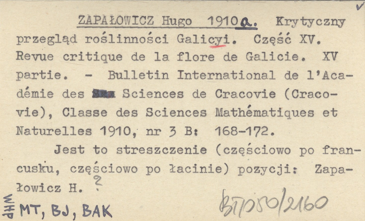 Bulletin International de l'Akadémie Polonaise des Sciences et des Lettres, Classe des Sciences Mathématiques et Naturalles (Cracovie) , 1910, nr 3 B: 168-172. Jest to streszczenie (częściowo po francusku, częściowo po łacinie) pozycji: ZAPAŁOWICZ H. ?