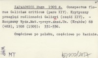 ZAPAŁOWICZ Hugo 1909 d Conspectus florae Galiciae criticus (pars XIV). Krytyczny przegląd roślinności Galicyi (część XIV).