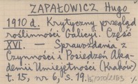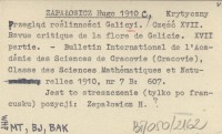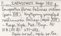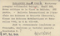 ZAPAŁOWICZ Hugo 1910 a Krytyczny przegląd roślinności Galicyi. Część XV. Revue critique de la flore de Galicie. XV partie.