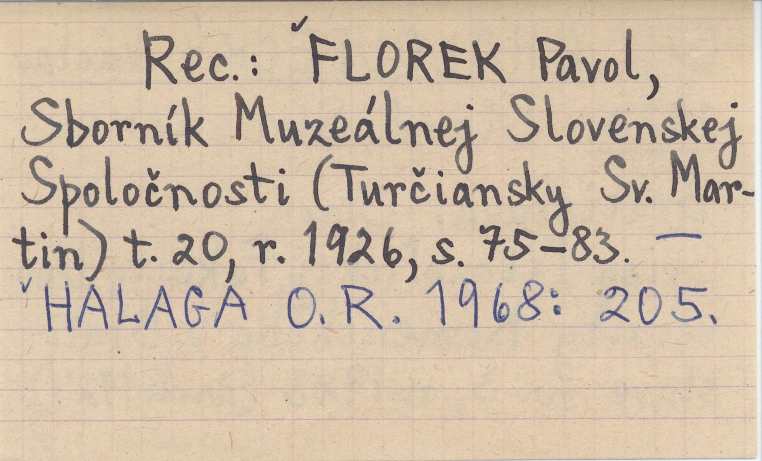 Spisy Filozofickej Fakulty Univerzity Komenského v Bratislave (Bratislava) , Nr 3, r. 1923, druk 1924. REC: FLOREK Pavol, Sborník Muzeálnej Slovenskej Spoločnosti (Turčiansky Sv. Martin) t. 20, r. 1926: 75-83. ; HALAGÁ O. R. 1968: 205.