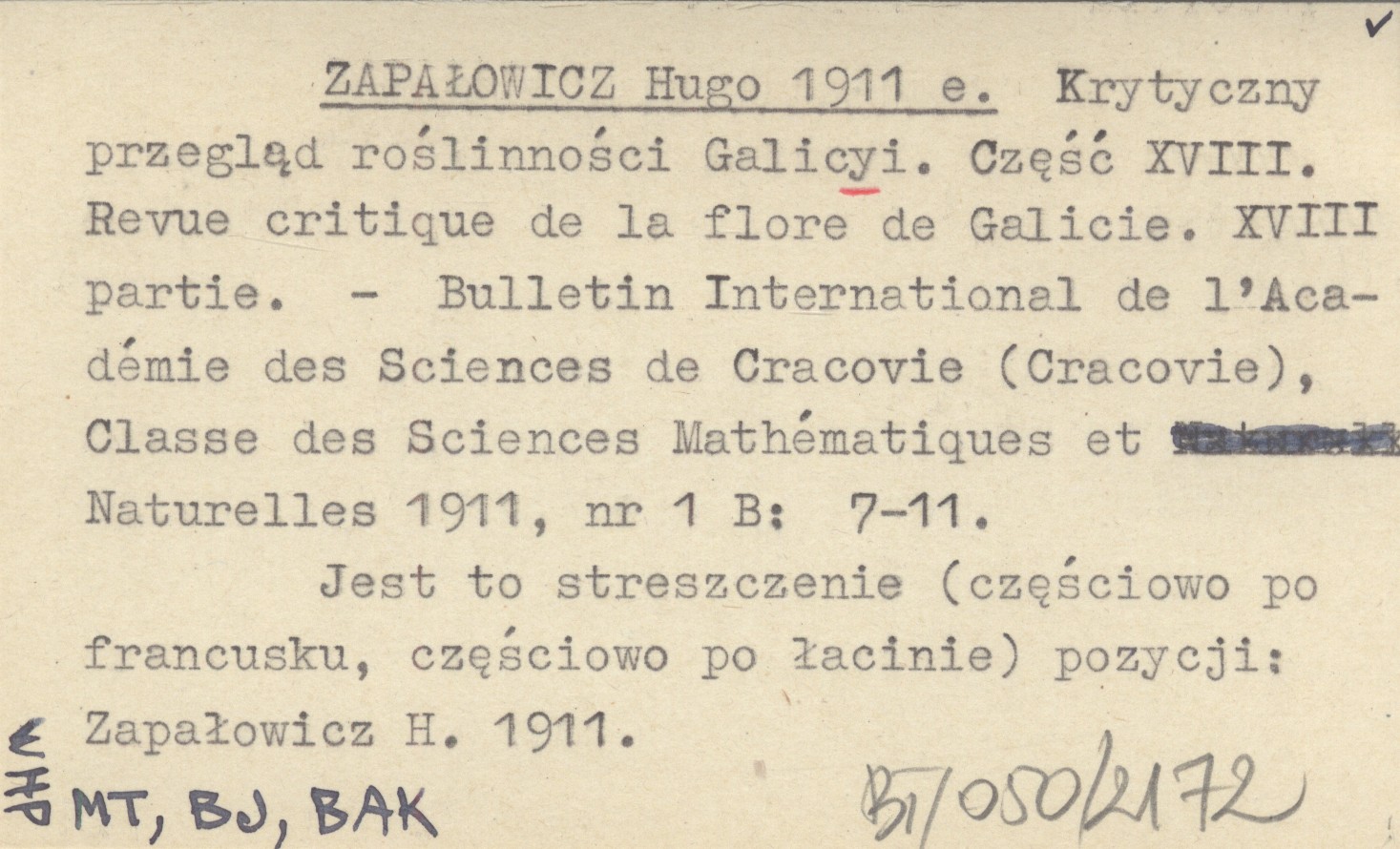 ZAPAŁOWICZ Hugo 1911 e Krytyczny przegląd roślinności Galicyi. Część XVIII. Revue critique de la flore de Galicie. XVIII partie.