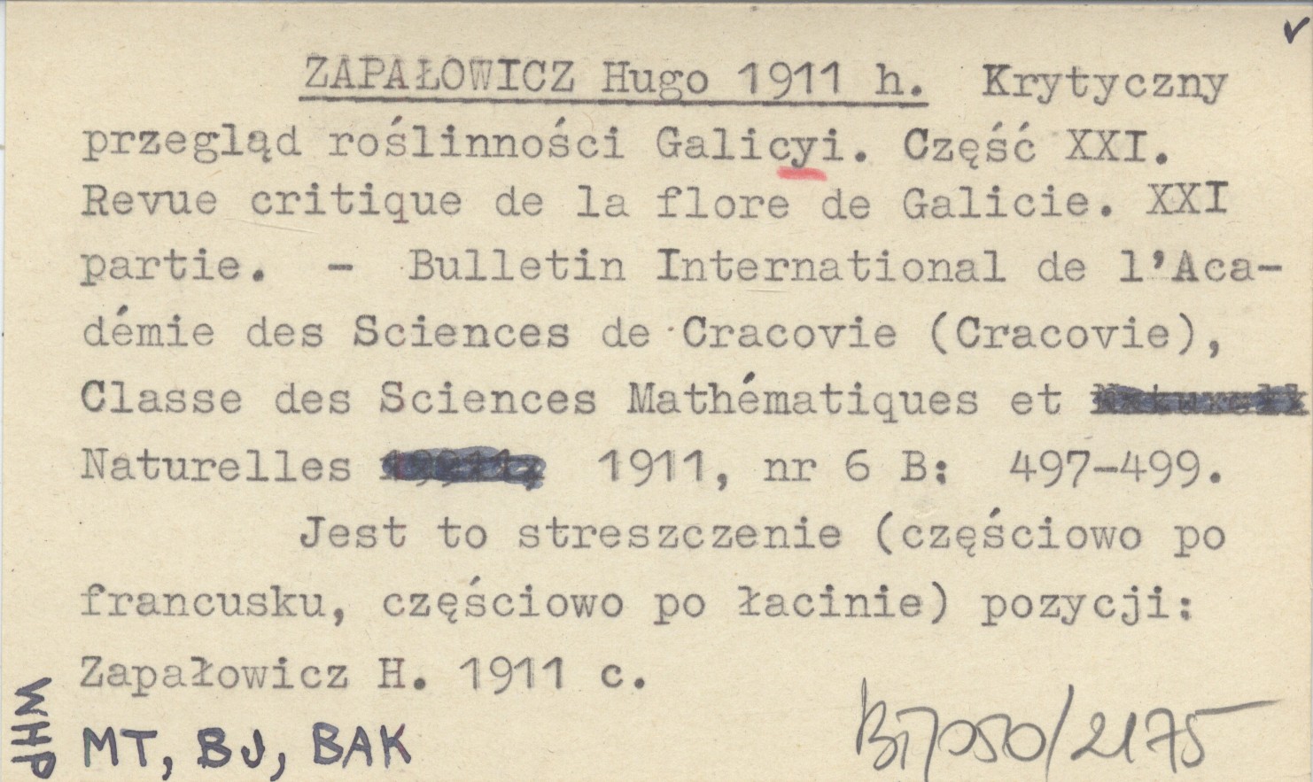 ZAPAŁOWICZ Hugo 1911 h Krytyczny przegląd roślinności Galicyi. Część XXI. Revue critique de la flore de Galicie. XXI partie.
