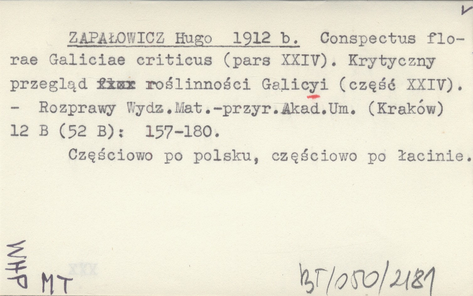 ZAPAŁOWICZ Hugo 1912 b Conspectus florae Galiciae criticus (pars XXIV). Krytyczny przegląd roślinności Galicyi (część XXIV).
