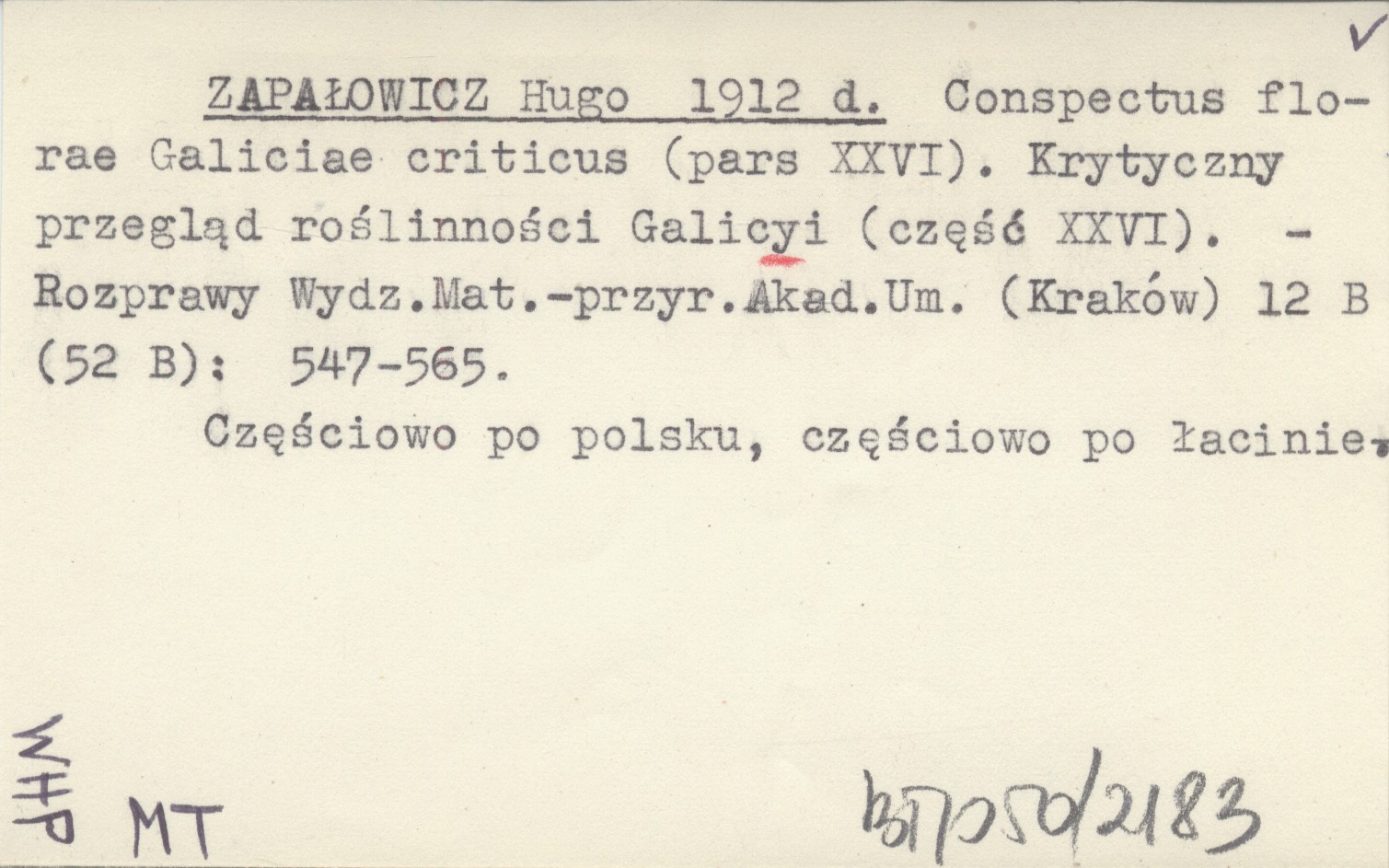 ZAPAŁOWICZ Hugo 1912 d Conspectus florae Galiciae criticus (pars XXVI). Krytyczny przegląd roślinności Galicyi (część XXVI).