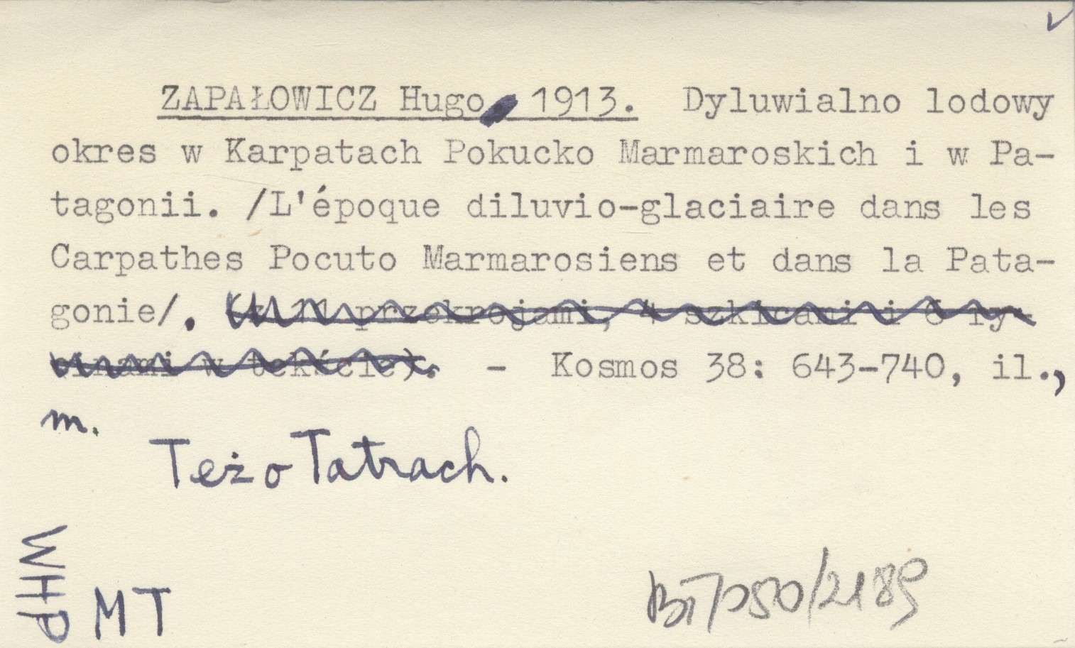 Kosmos, 38: 643-740, il., mapa. Też o Tatrach.