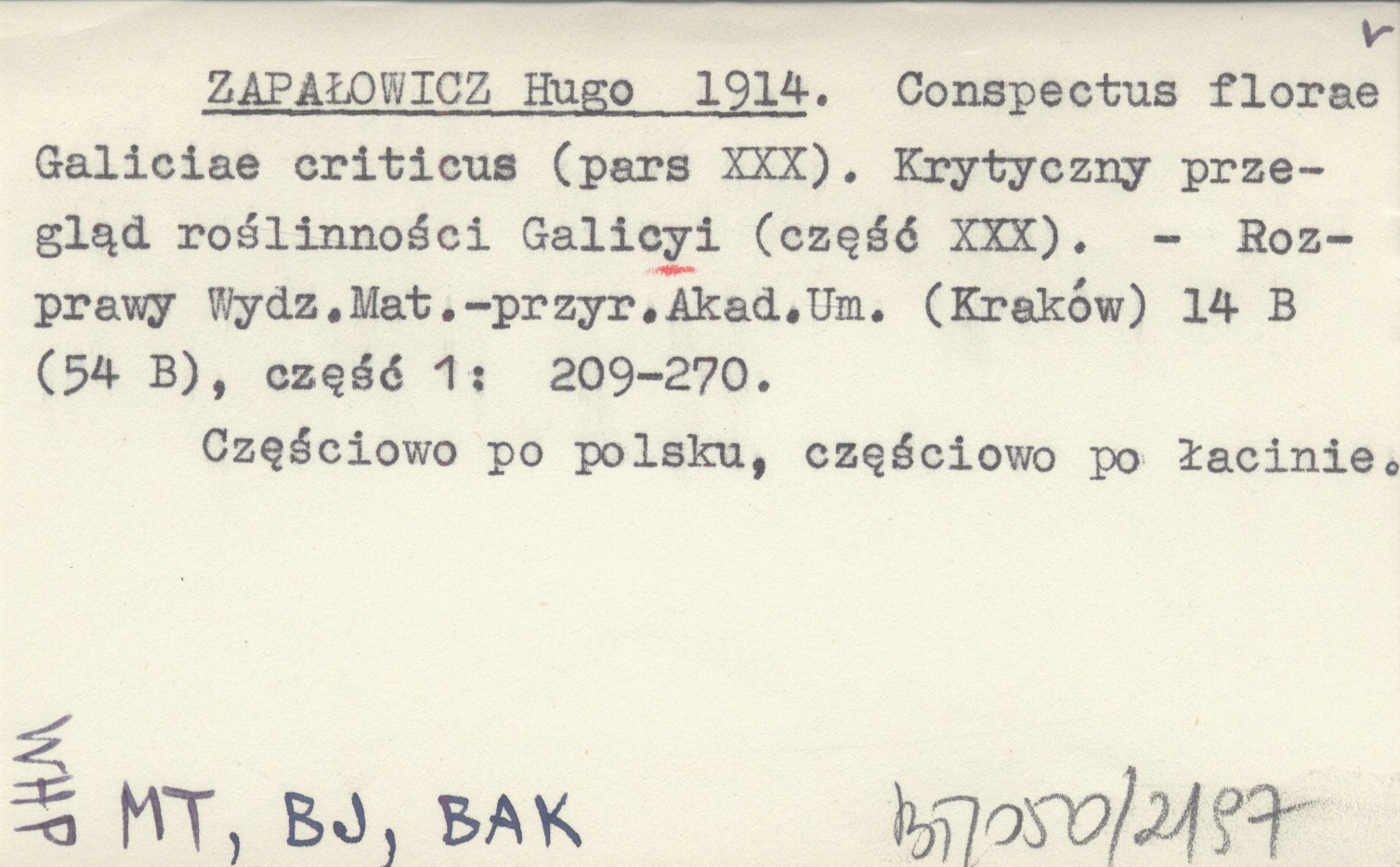 Rozprawy Wydziału Matematyczno-Przyrodniczego Akademii Umiejętności (Kraków) , 14 B (54 B), cz. 1: 209-270. Częściowo po polsku, częściowo po łacinie.