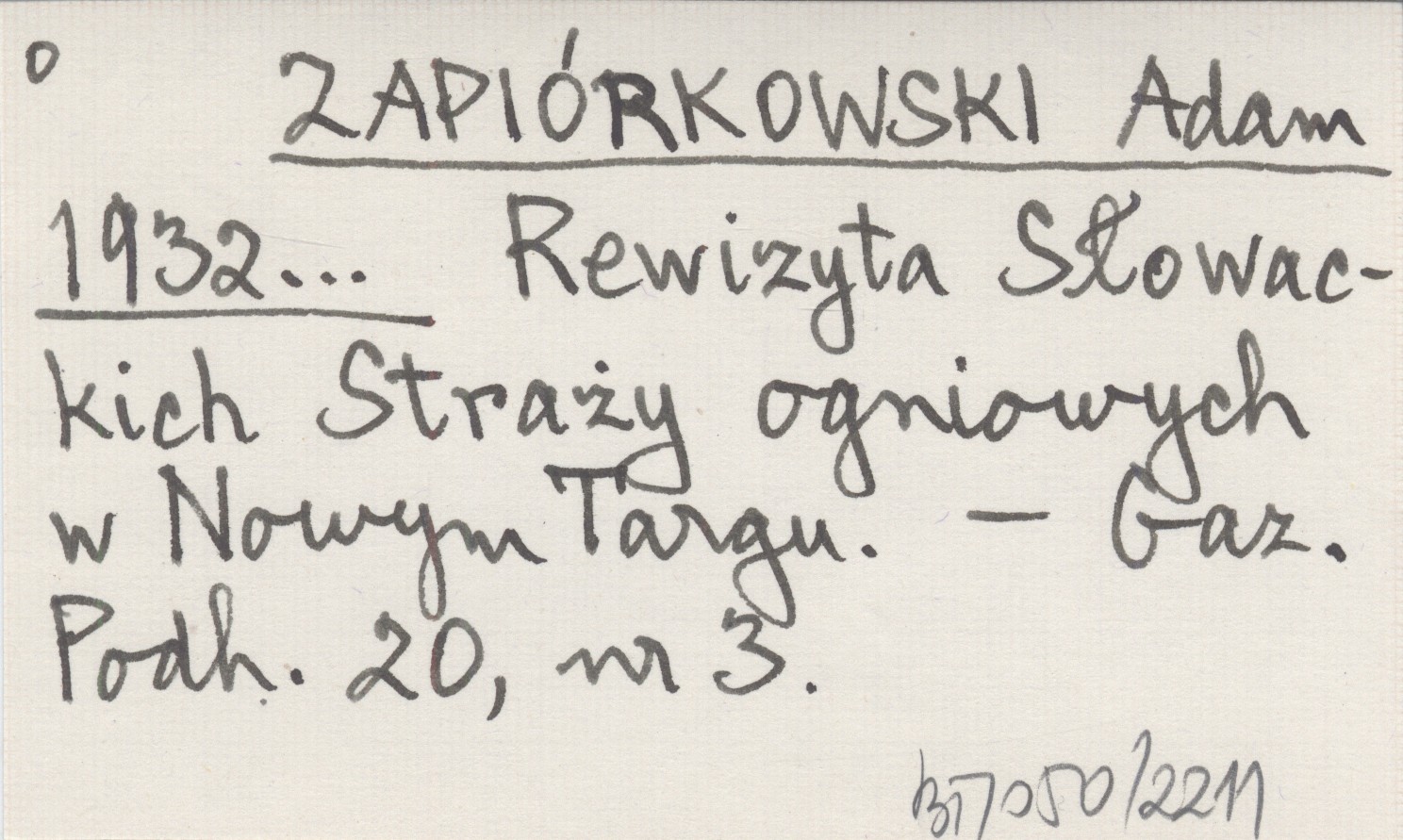 ZAPIÓRKOWSKI Adam 1932... Rewizyta Słowackich Straży ogniowych w Nowym Targu.