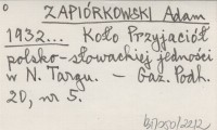 ZAPIÓRKOWSKI Adam 1932... Koło Przyjaciół polsko-słowackiej jedności w N. Targu.