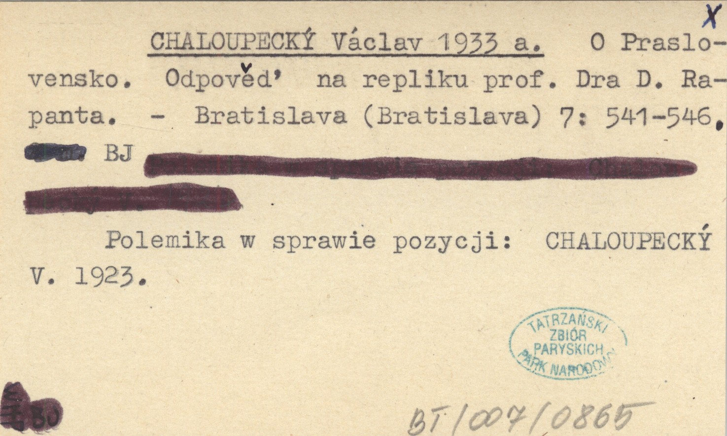 Bratislava (Bratislava) , 7: 541-546. Polemika w sprawie pozycji: CHALOUPECKÝ V. 1923