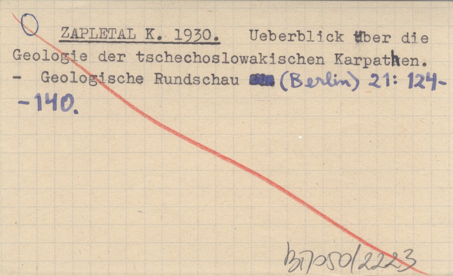 ZAPLETAL K. 1930 Ueberblick über die Geologie der tschechoslowakischen Karpathen.