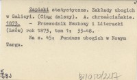 Zapiski statystyczne. Zakłady ubogich w Galicyi. (Ciąg dalszy). A. chrześcijańskie. 1873