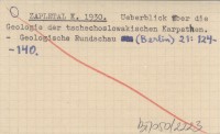ZAPLETAL K. 1930 Ueberblick über die Geologie der tschechoslowakischen Karpathen.