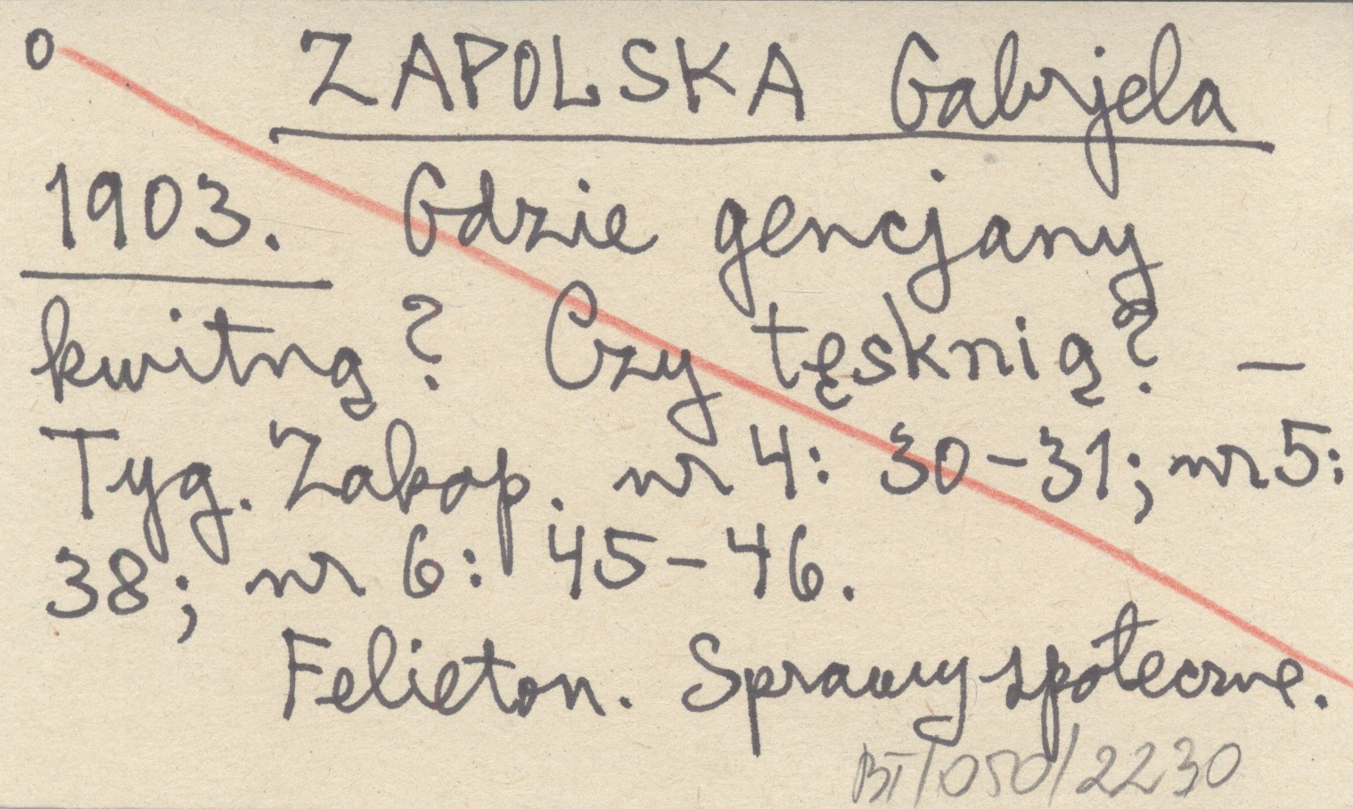 ZAPOLSKA Gabrjela 1903 Gdzie gencjany kwitną? Czy tęsknią?
