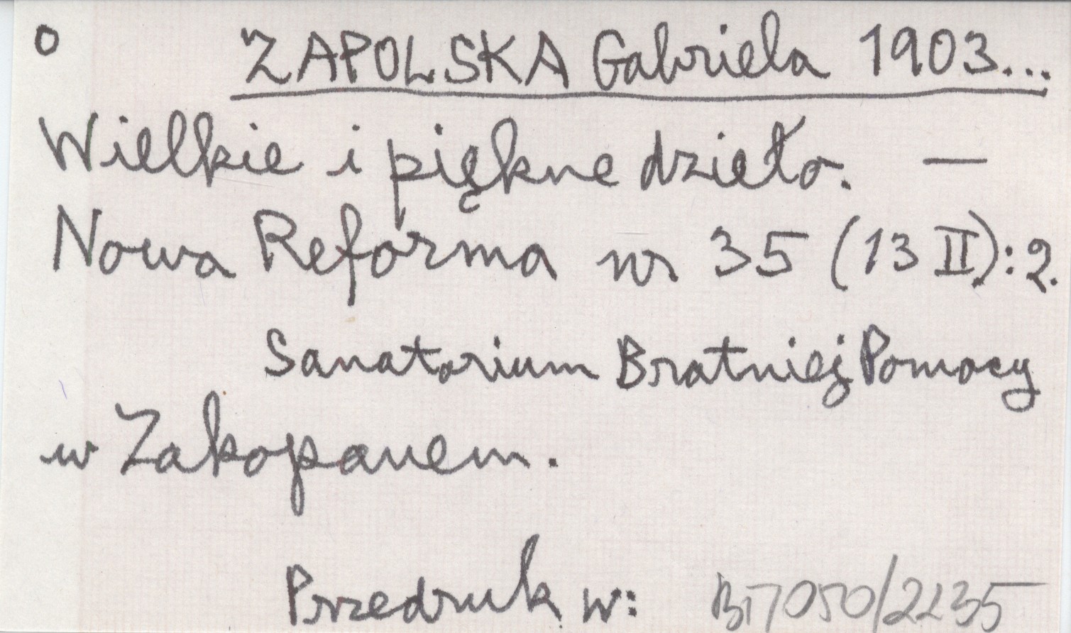 ZAPOLSKA Gabriela 1903... Wielkie i piękne dzieło.