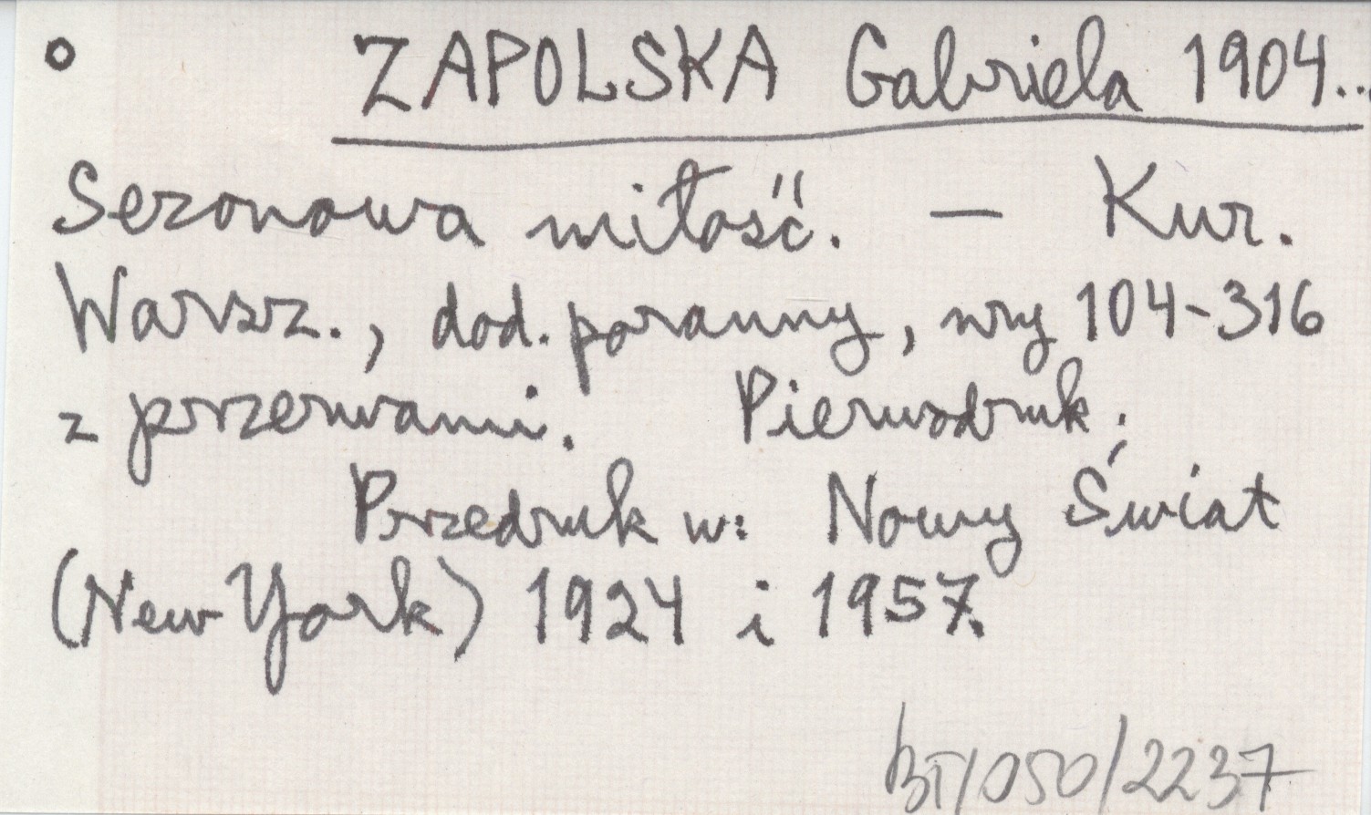 Kurier Warszawski, dod. poranny, Nr 104-316 (z przerwami). Pierwodruk. Przedruk w: Nowy Świat (New York) 1924 i 1957.