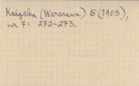 Warszawa , 157, 172, 176 s., 8°. Pierwodruk w odcinkach Kuriera Warszawskiego, 1904. REC: GALLE Henryk, Książka (Warszawa) 5 (1905), nr 7: 272-273.
