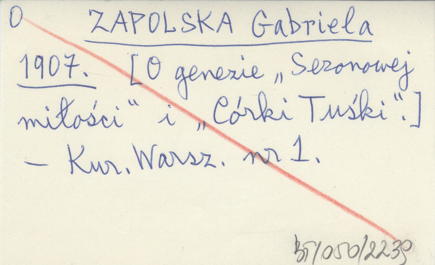 ZAPOLSKA Gabriela 1907 [O genezie "Sezonowej miłości" i "Córki Tuśki".]