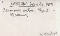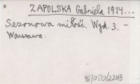 ZAPOLSKA Gabriela 1921... Sezonowa mi³o¶æ.