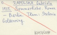 ZAPOLSKA Gabriela 1915 Sommerliebe. Roman.