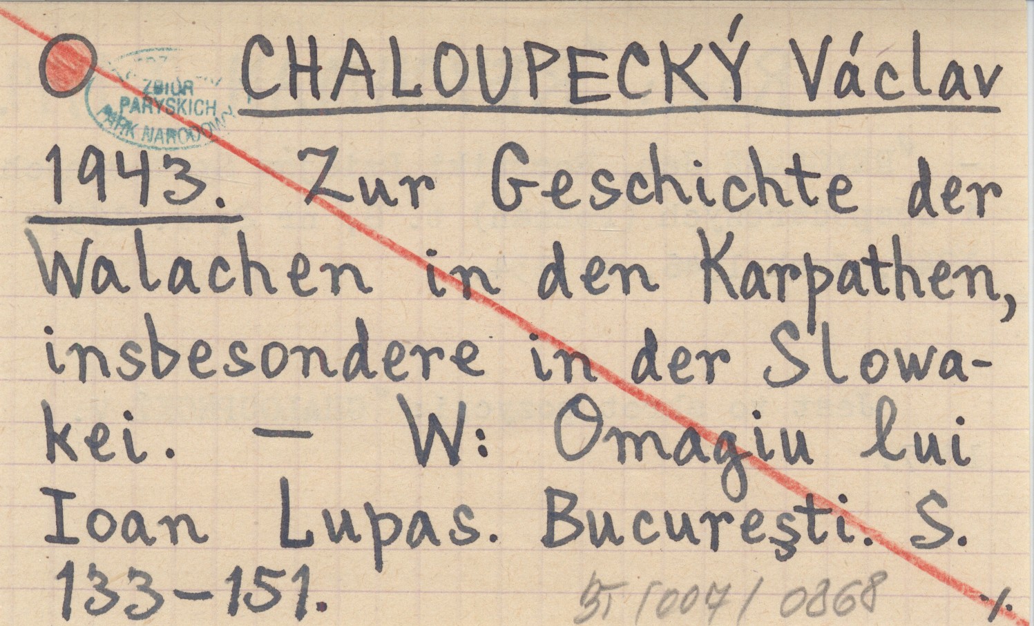 CHALOUPECKÝ Václav 1943 Zur Geschichte der Walachen in den Karpathen, insbesondere in der Slowakei.