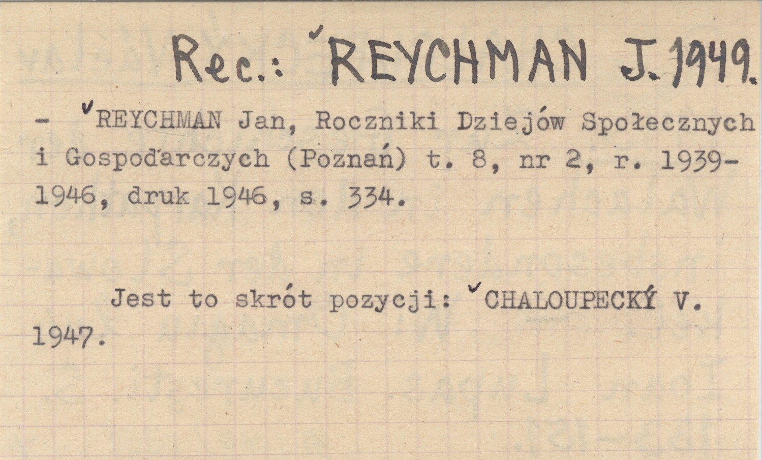 Omagiu lui Ioan Lupas. Bucureşti , S. 133-151. Jest to skrót pozycji: CHALOUPECKÝ V. 1947 REC: REYCHMANN J. 1949 ; REYCHMAN Jan, Roczniki Dziejów Społecznych i Gospodarczych (Poznań) t. 8, nr 2, r. 1939-1946, druk 1946: 334.