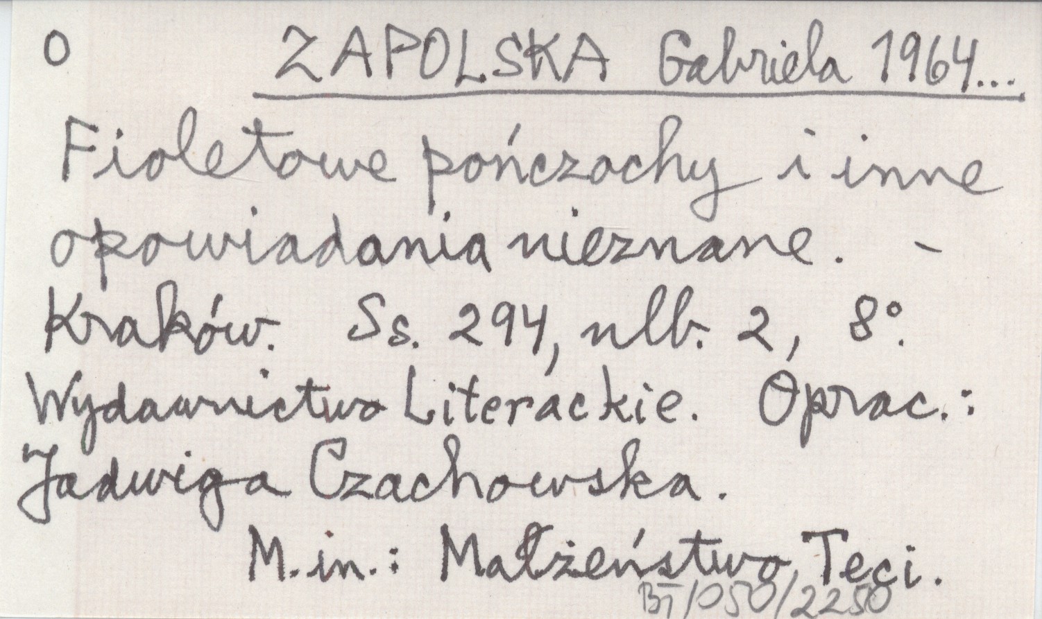 ZAPOLSKA Gabriela 1964... Fioletowe pończochy i inne opowiadania nieznane.