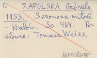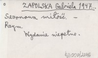 ZAPOLSKA Gabriela 1970... Sezonowa miłość.