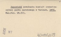 Zapowiedź powołania komisji organizacyjnej parku narodowego w Tatrach. 1936
