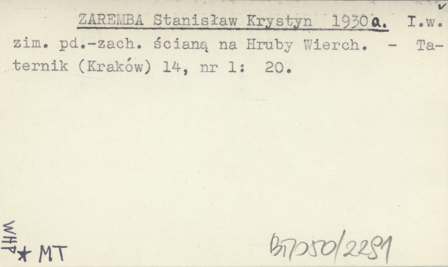 ZAREMBA Stanisław Krystyn 1930 a I. w. zim. pd.-zach. ścianą na Hruby Wierch.