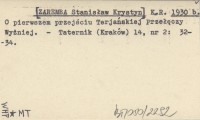 K. R. [ZAREMBA Stanisław Krystyn] 1930 b O pierwszem przejściu Terjańskiej Przełęczy Wyżniej.
