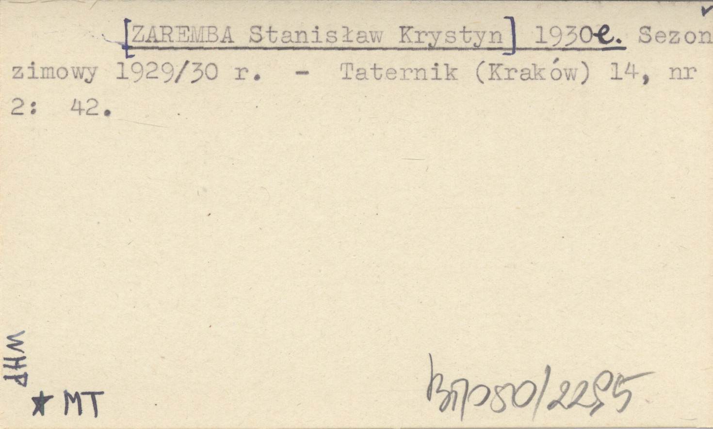 [ZAREMBA Stanisław Krystyn] 1930 e Sezon zimowy 1929/30 r.