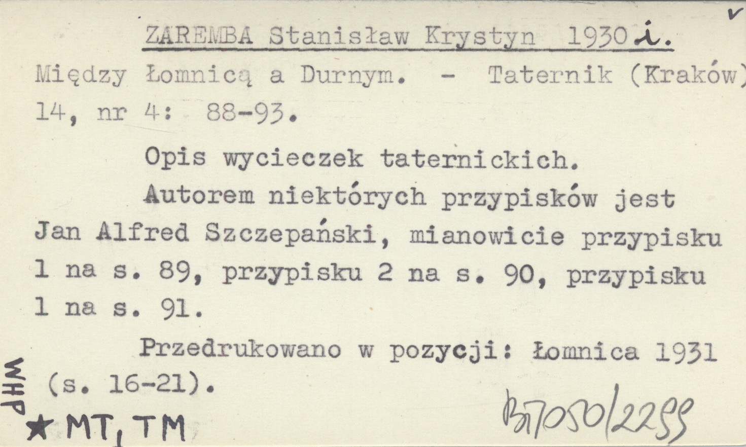 Taternik (Kraków) , 14, nr 4: 88-93. Opis wycieczek taternickich. Autorem niektórych przypisków jest Jan Alfred Szczepański, mianowicie przypisku 1 na s. 89, przypisku 2 na s. 90, przypisku 1 na s. 91. Przedrukowano w pozycji: Łomnica 1931: 16-21.