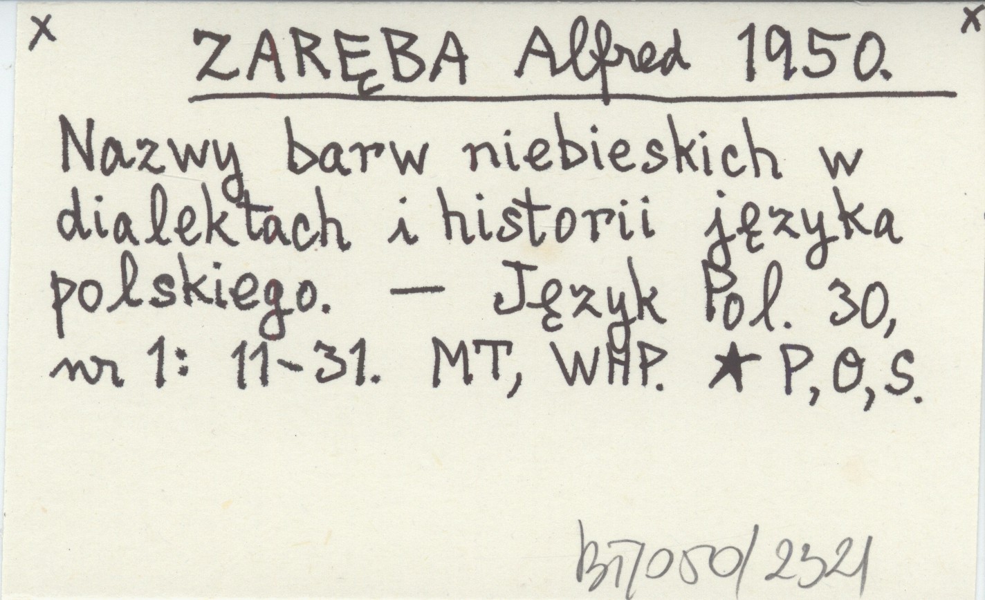 ZARĘBA Alfred 1950 Nazwy barw niebieskich w dialektach i historii języka polskiego.