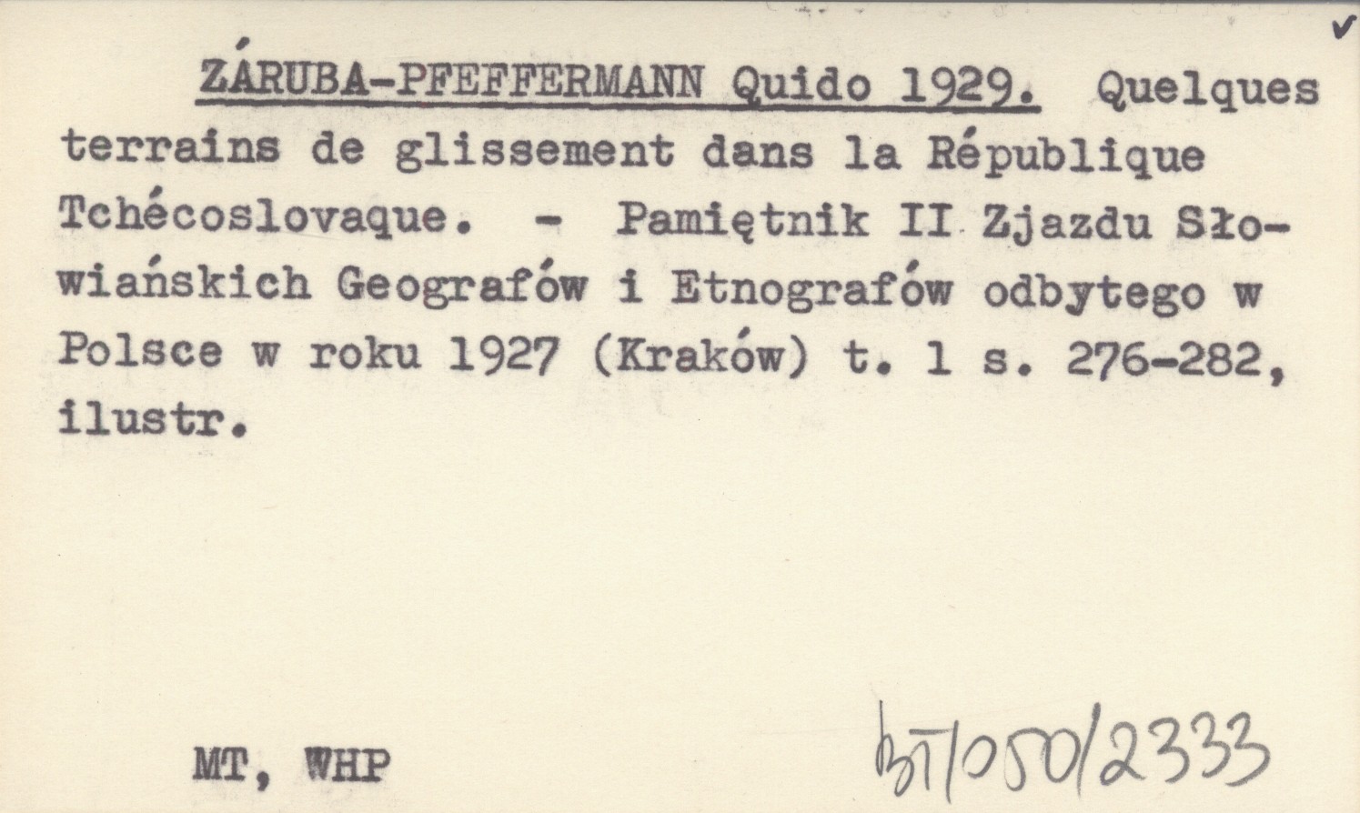 ZÁRUBA-PFEFFERMANN Quido 1929 Quelques terrains de glissement dans la République Tchécoslovaque.