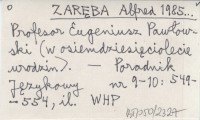 ZARĘBA Alfred 1985... Profesor Eugeniusz Pawłowski (w osiemdziesięciolecie urodzin).