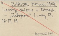 Zakopane (Zakopane) , 1, nr 13, 16, 17, 19. REC: [KORDYS Roman] rk., Taternik (Lwów) 3 (1909), nr 1: 19.