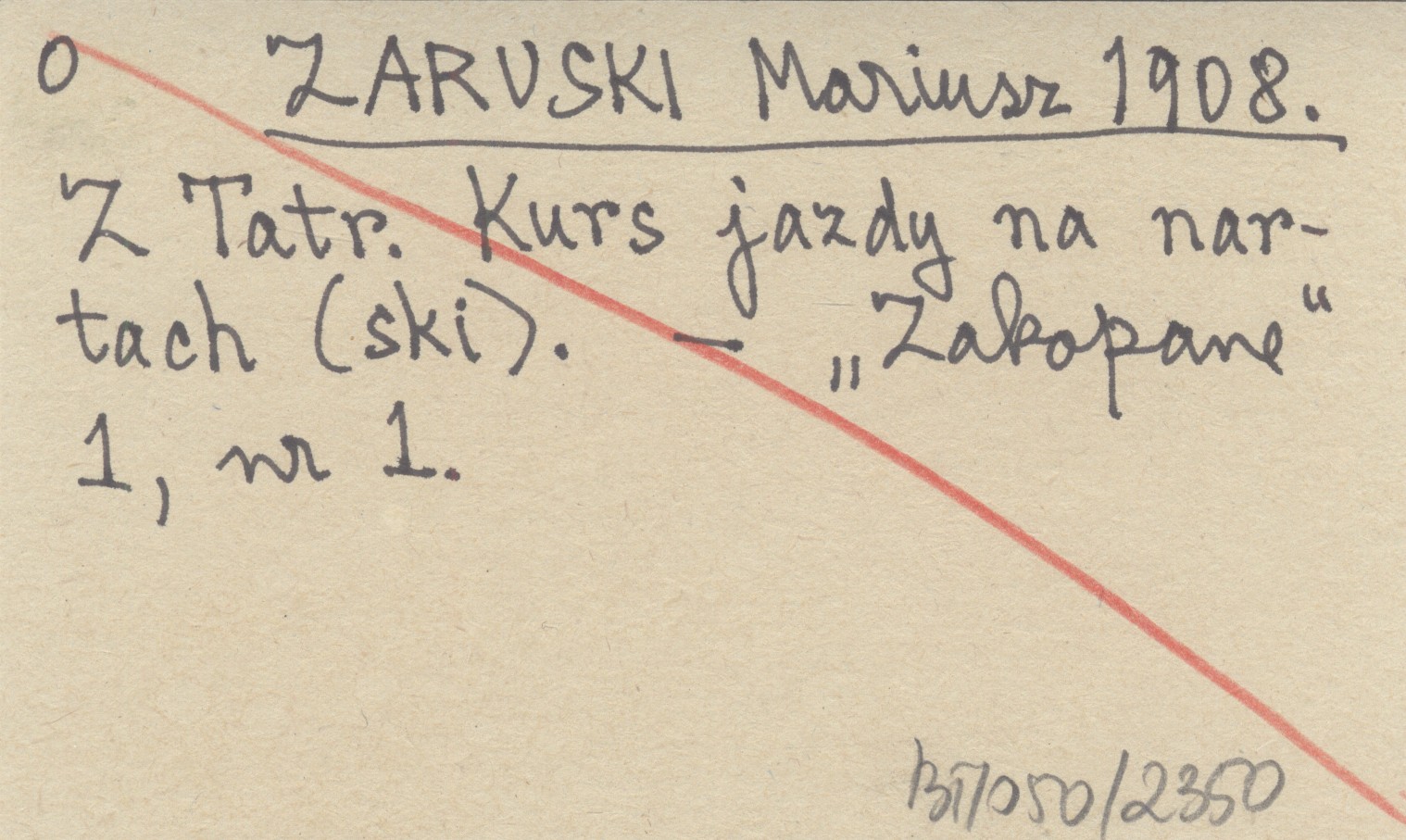 ZARUSKI Mariusz 1908 Z Tatr. Kurs jazdy na nartach (ski).