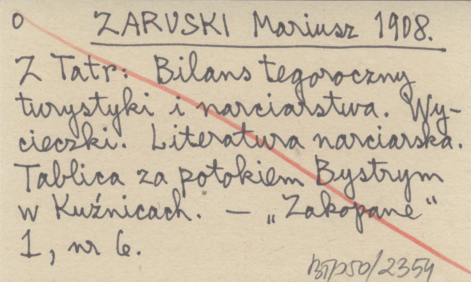 ZARUSKI Mariusz 1908 Z Tatr: Bilans tegoroczny turystyki i narciarstwa. Wycieczki. Literatura narciarska. Tablica za potokiem Bystrym w Kuźnicach.