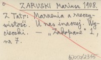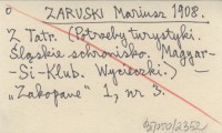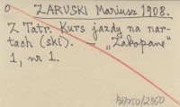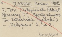 ZARUSKI Mariusz 1908 Z Tatr: Bilans tegoroczny turystyki i narciarstwa. Wycieczki. Literatura narciarska. Tablica za potokiem Bystrym w Kuźnicach.