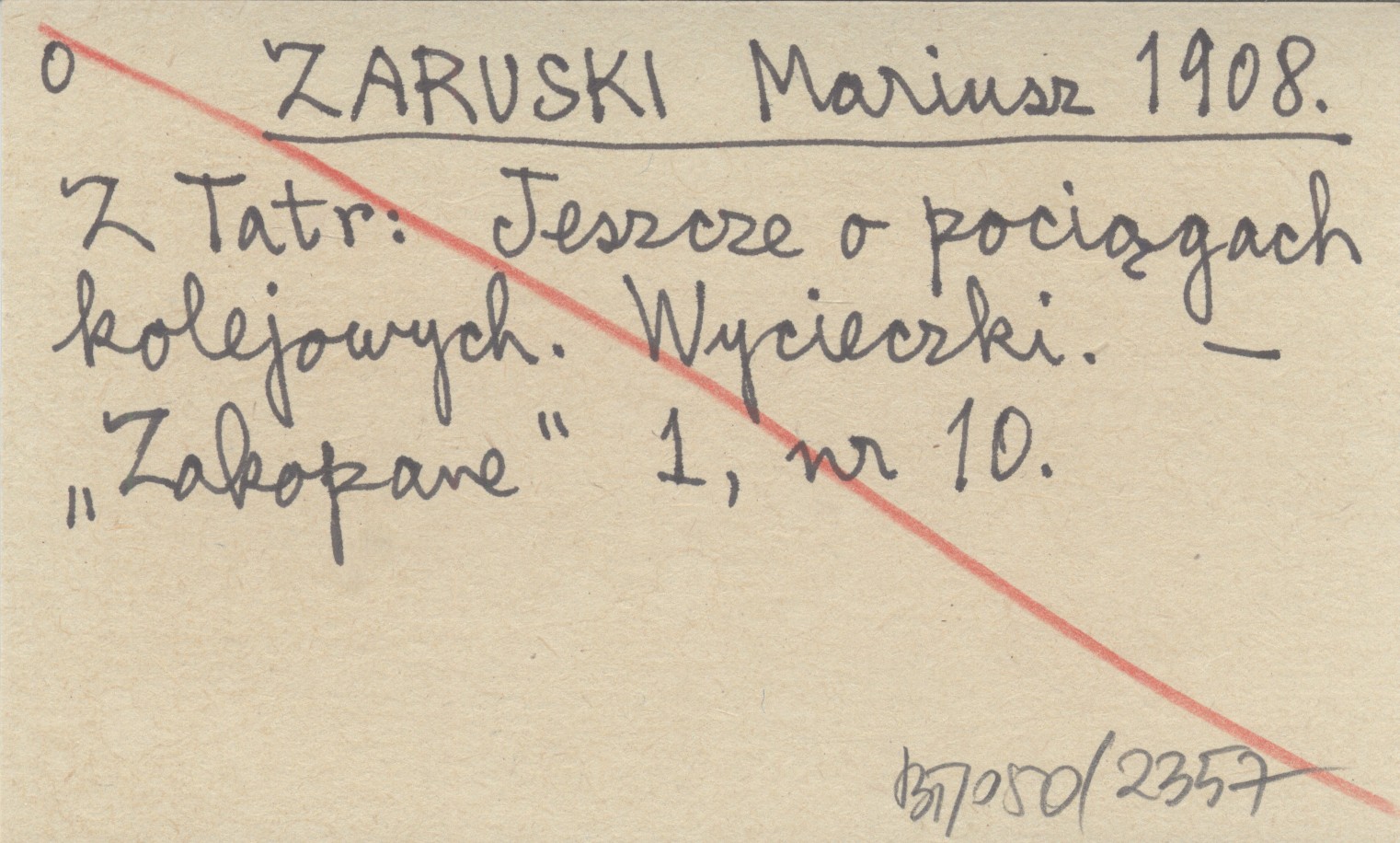 ZARUSKI Mariusz 1908 Z Tatr: Jeszcze o pociągach kolejowych. Wycieczki.