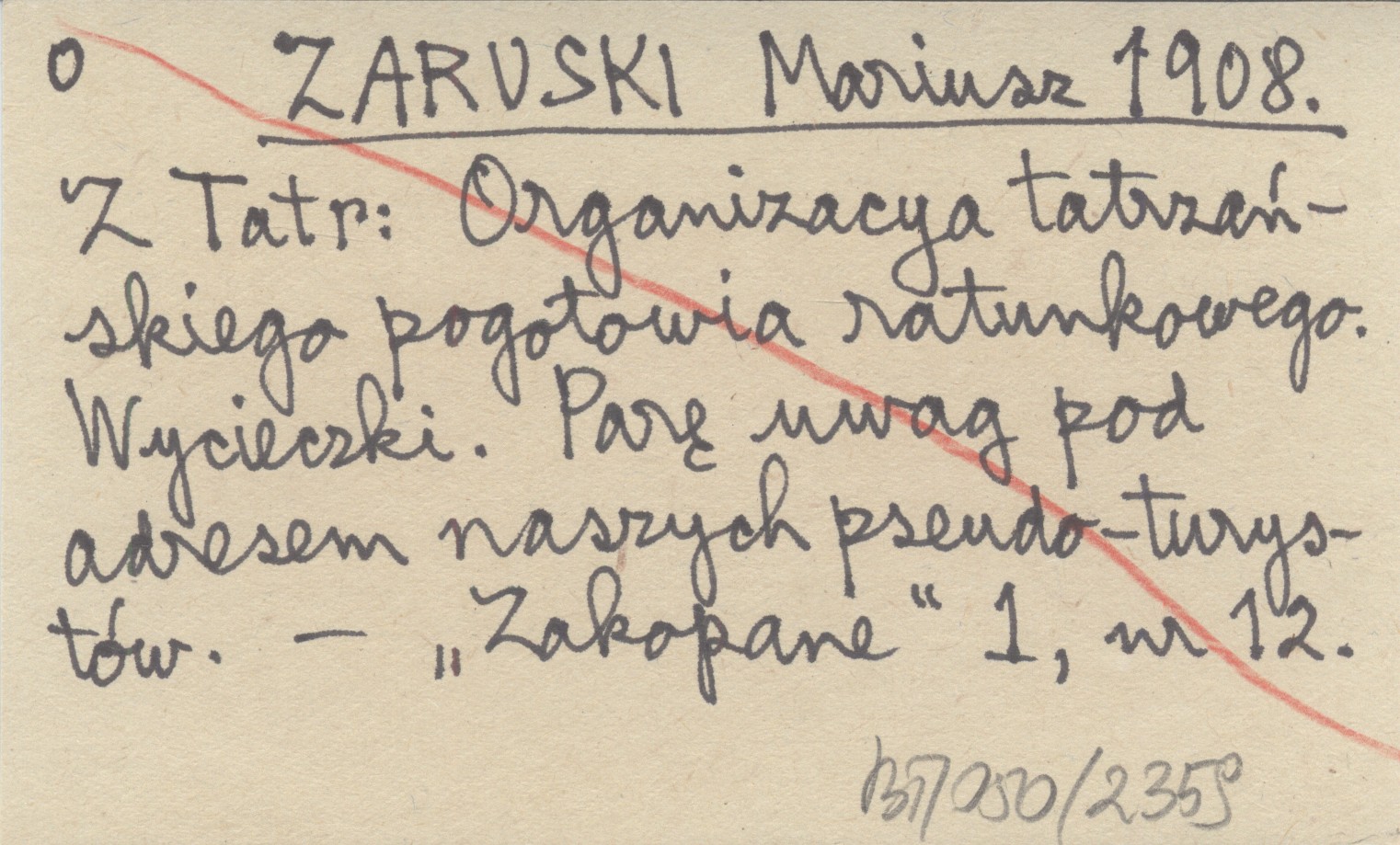 ZARUSKI Mariusz 1908 Z Tatr: Organizacya tatrzańskiego pogotowia ratunkowego. Wycieczki. Parę uwag pod adresem naszych pseudo-turystów.
