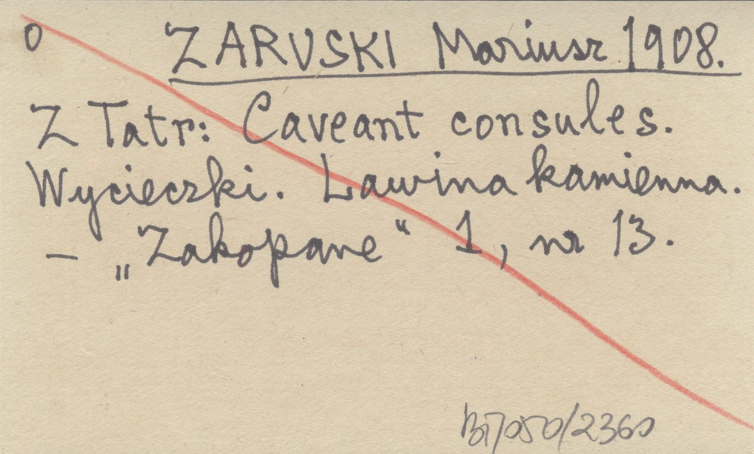 ZARUSKI Mariusz 1908 Z Tatr: Caveant consules. Wycieczki. Lawina kamienna.