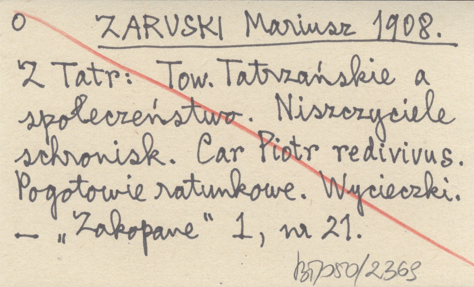 ZARUSKI Mariusz 1908 Z Tatr: Tow. Tatrzańskie a społeczeństwo. Niszczyciele schronisk. Car Piotr redivivus. Pogotowie ratunkowe. Wycieczki.
