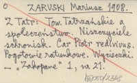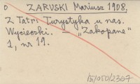 ZARUSKI Mariusz 1908 Z Tatr: Wycieczki.