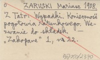 ZARUSKI Mariusz 1908 Z Tatr: Wypadki. Konieczność pogotowia ratunkowego. Wezwanie do składek.