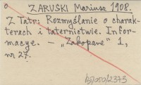 ZARUSKI Mariusz 1908 Z Tatr: Rozmyślanie o charakterach i taternictwie. Informacye.