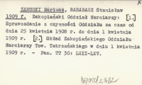 ZARUSKI Mariusz BARABASZ, Stanisław. ; 1909 f Zakopiański Oddział Narciarzy: [1.] Sprawozdanie z czynności Oddziału za czas od dnia 25 kwietnia 1908 r. do dnia 1 kwietnia 1909 r. [2.] Skład Zakopiańskiego Oddziału Narciarzy Tow. Tatrzańskiego w dniu 1 kwietnia 1909 r.